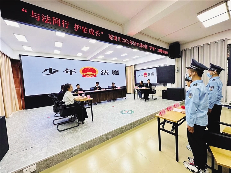 3月9日,在琼海市嘉积镇第三小学报告厅,随着“书记员”宣读法庭规则,一场别开生面的少年模拟法庭正式“开庭”。