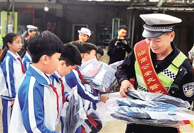 当天,各市县公安、教育、乡村振兴等部门及部分公益企业负责人分别向国省道沿线“一老一小”(老年人、学生)赠送反光背心、反光书包,向部分村民和学生赠送安全头盔,倡议道路交通参与者守法出行、平安回家。
