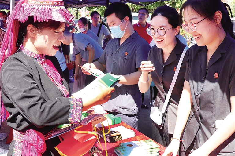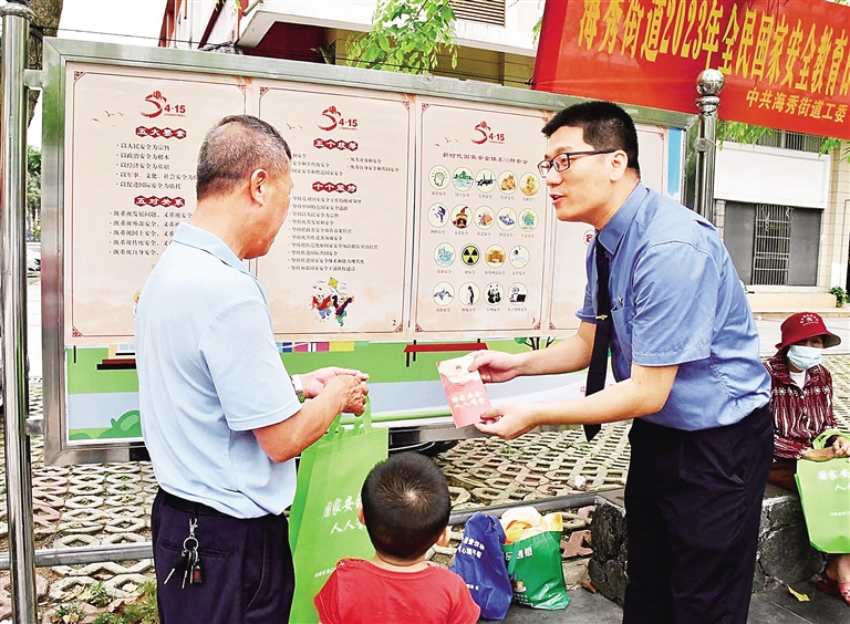 | 海口市检察院青年干警到秀英时代广场开展国家安全宣传进社区活动(海口市检察院供图) |