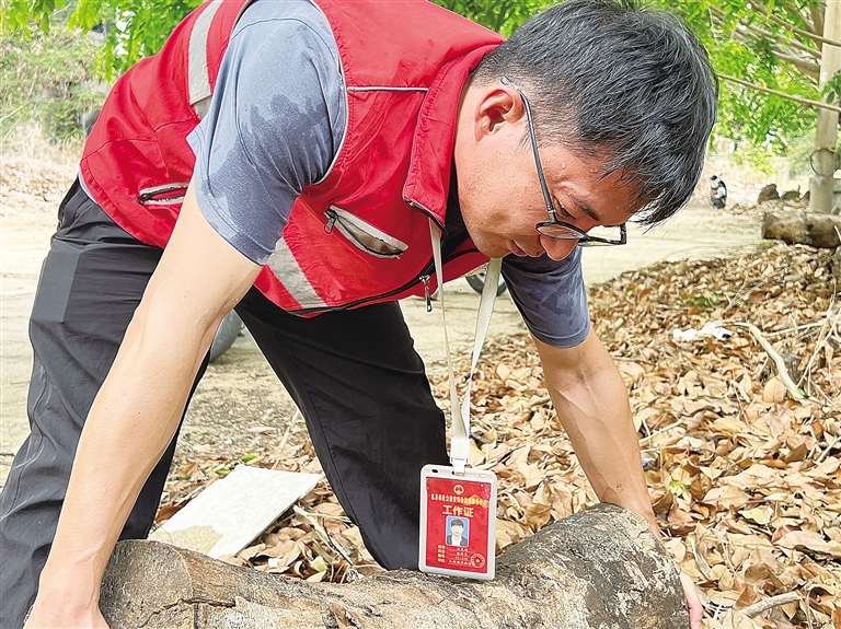| 东方市八所镇滨海社区网格员王长在滨海社区清理卫生死角(东方综治中心供图) |