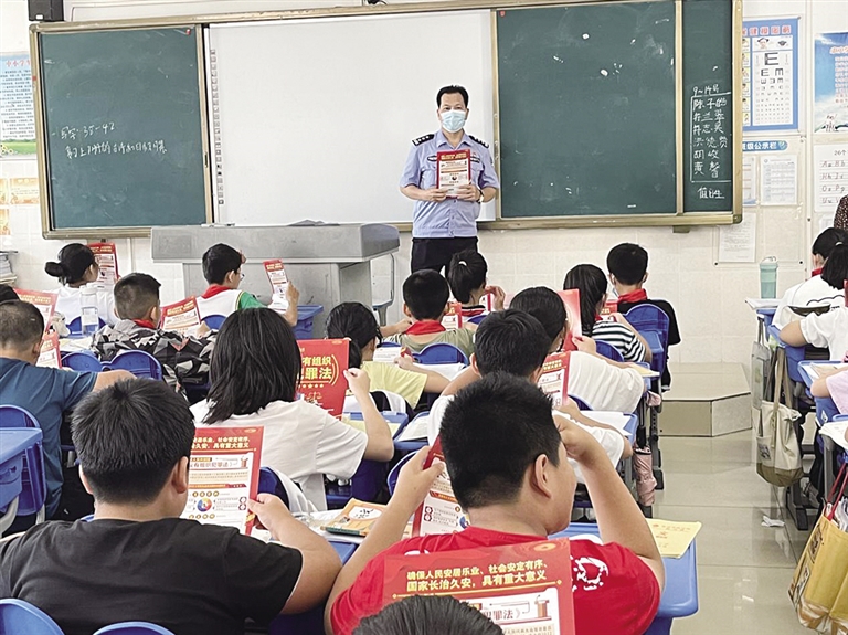近日,三亚市公安局吉阳分局月川派出所民警走进校园,给同学们送上一份声色俱全的“法治套餐”。