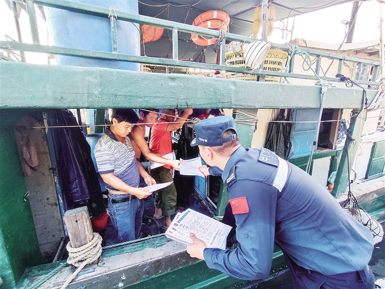 休渔前,海南海警局坚持线上与线下相结合,持续加强伏季休渔执法宣传和法律政策宣讲,积极引导渔船民自觉遵守法律法规,让伏季休渔政策深入人心。
