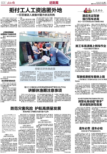 本报讯(记者陈太东)为进一步加强道路交通安全管理,从源头上遏制道路交通事故发生,近日,乐东黎族自治县公安局交通管理大队联合县综合行政执法局、交通运输局开展交通安全整治行动。整治行动聚焦辖区突出交通违法行为,紧盯客货运等重点车辆,严管严查未按规定站贴反光标识、违法载人、不按规定使用安全带、超员载客等交通违法行为。
