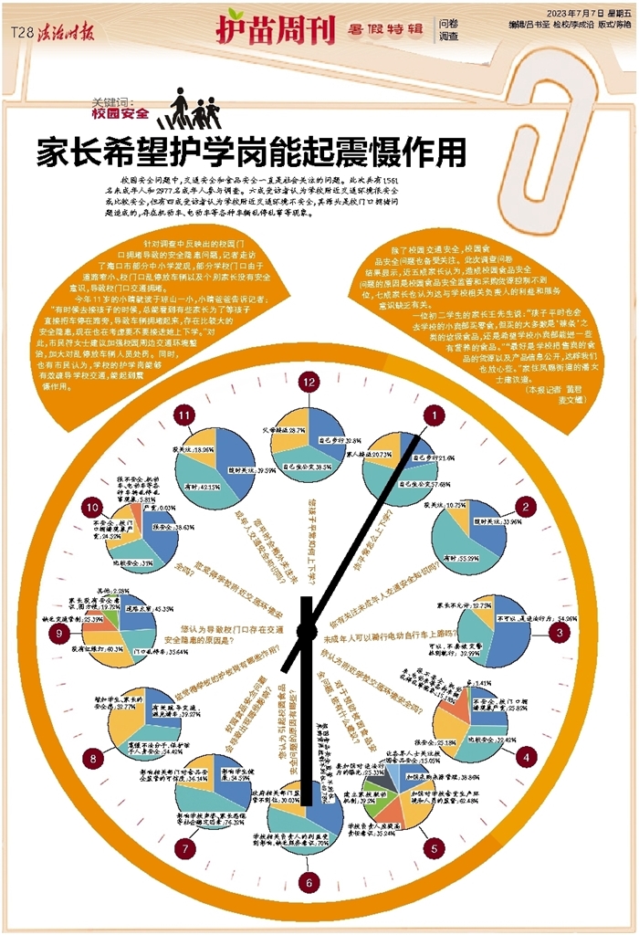 除了校园交通安全,校园食品安全问题也备受关注。此次调查问卷结果显示,近五成家长认为,造成校园食品安全问题的原因是校园食品安全监管和采购货源控制不到位,七成家长也认为这与学校相关负责人的利益和服务意识缺乏有关。