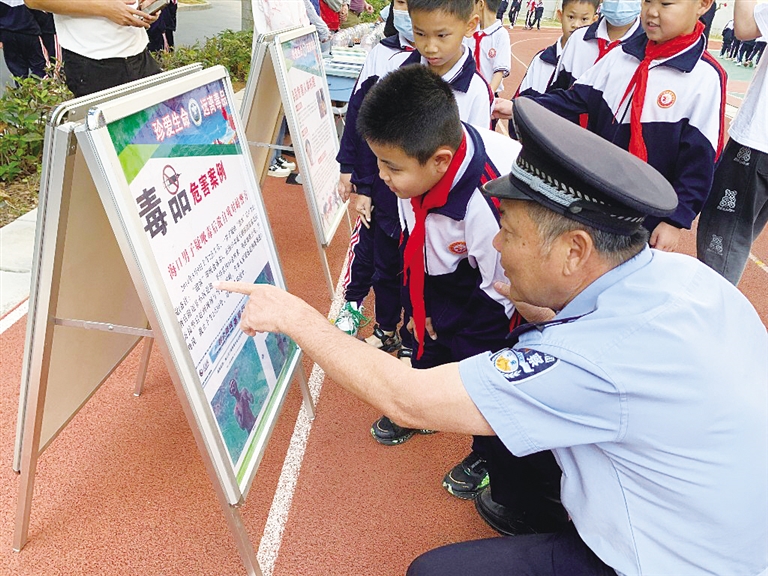 3月24日,吉阳分局月川派出所联合海罗村委会等多部门开展“抵制毒品侵害,守护健康未来”禁毒宣传进校园活动。活动中,民警组织学生观看仿真毒品模型,介绍毒品的定义、种类、特征等知识,并积极为同学们现场讲解毒品的危害和解答相关疑问,帮助同学们树立起防毒拒毒意识。