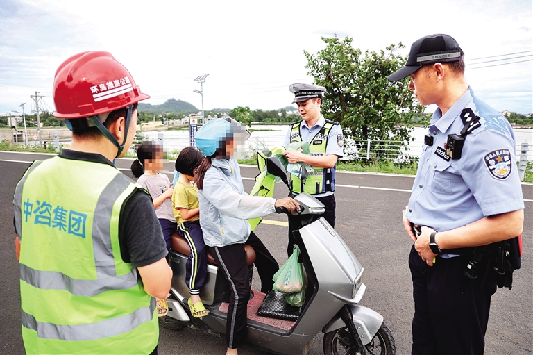 宣传小分队深入下浦湾农家乐海滩与群众面对面交流,针对环岛旅游公路沿线村镇地理位置的特点以及“一老一小”重点群体,讲解了骑乘电动自行车、摩托车佩戴安全头盔,非机动车和行人不得随意横穿马路,农用三轮车违法载人等交通安全常识,提醒群众要增强交通安全意识,自觉遵守交通法规,知危险、会避险,安全文明出行。