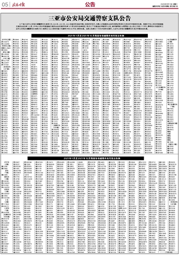 三亚市公安局交通警察支队公告