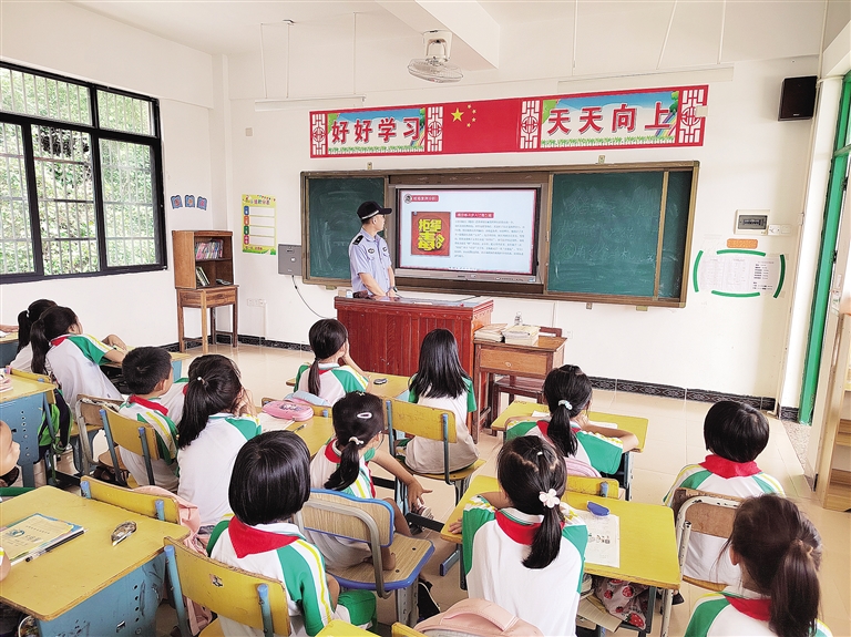 “同学们,作为一名在校学生,要学会拒绝网络游戏、杜绝打架斗殴,增强法律意识,做个遵纪守法、健康积极向上的阳光少年。”近日,在琼海市嘉积镇第一小学大礼校区的教室内,民警李高志结合真实案例,深入浅出地向学生们讲解违法犯罪的危害性,并告诫学生们要学法、知法、懂法、守法,树立正确的人生观、世界观。