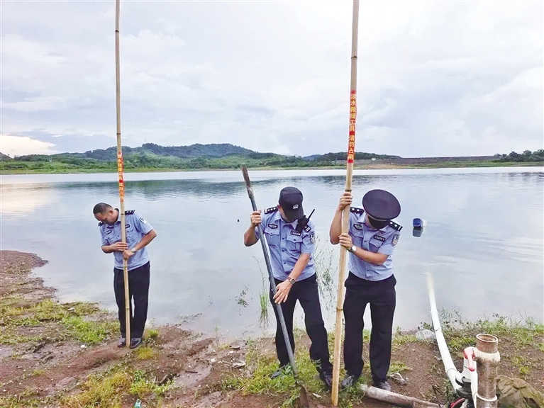 据介绍,细水派出所为预防溺水事故发生,砍来5米长以上的竹竿,在靠近南湾河的岔道口、村庄的沿线岸边竖起100余支竹竿。为保持“救生竿”循环利用,派出所民警在竿体中间用防水胶粘贴“溺水救援工具,请勿占用”的醒目标识,让群众知道关键时刻能拿竹竿用于救援,平时也要爱护,不挪动不破坏。