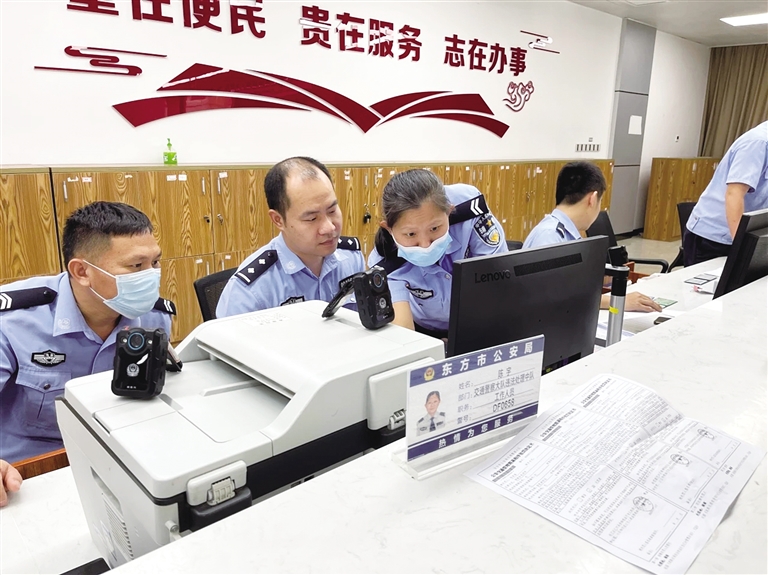 8月14日至9月22日,东方市公安局交警大队组织12个派出所进行交通业务办理实训,以一周的时间为1个培训周期,每周组织4个派出所业务骨干到政务服务大厅轮流跟班学习,助推便民服务提质增效。