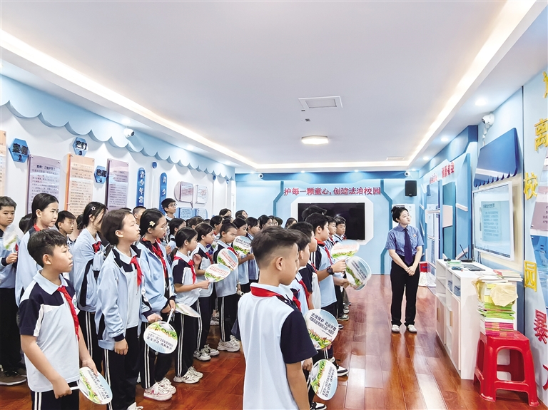 法治副校长林室均以法条+案例的形式,讲解未成年人保护法中未成年人的界定、享有的基本权利,以及预防未成年人犯罪法中规定的“不良行为”。感城检察室负责人赵锐结合多年来的办案经验,讲解教育基地展示的经典案例。东方检察院检察官林佳琪运用未成年检察工作经验,为小学生上了一堂生动有趣的法治课。(记者董林)