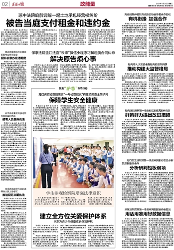 本报讯(记者李传敏 通讯员陈拓)近日,琼中黎族苗族自治县人民法院成功调解一起土地承包经营权纠纷,被告当场履行土地租金4200元及部分违约金的给付义务,快速高效化解纠纷,实现政治效果、法律效果与社会效果有机统一。