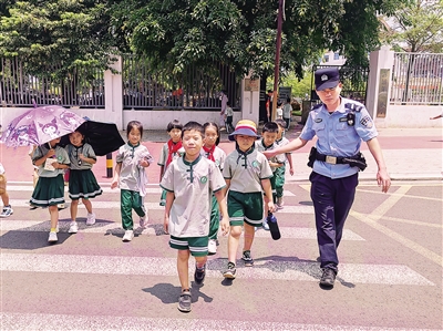 从斑马线走过去,你们慢一点,注意安全!”5月6日一大早,洋浦第一小学校门外,儋州市公安局洋浦分局新英湾海岸派出所的民警、辅警像往常一样,提前站好护学岗,他们一边疏导交通,一边引导学生安全过马路。