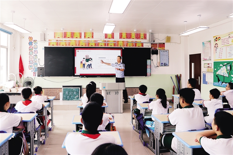 “给同学取外号,辱骂、殴打同学属于校园欺凌。”“遇到校园欺凌,要第一时间告诉老师、父母或者报警。”……讲台下,学生们踊跃发言,课堂气氛活跃。