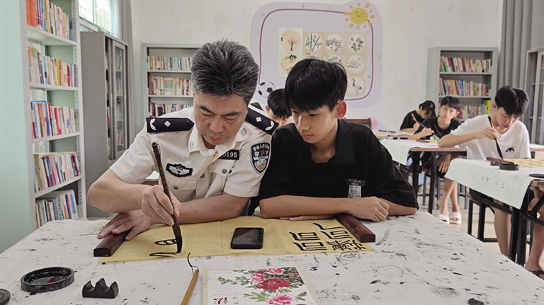 “不要放弃呀,你很有书画方面的灵性,坚持下去一定会有好的结果。”在八所分局民警、辅警的努力下,“掉队”的孩子又重新回到课堂,书画班也渐渐走上正轨。