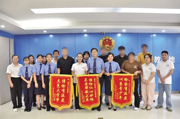 近日,已结束受帮教的徐某某在父母的带领下来到儋州市检察院,给该院“儋检护小侬”团队送来一面致谢锦旗。这面锦旗承载了徐某某从迷失到感恩的成长故事,也成为该院教育、感化、挽救涉罪未成年人的生动缩影。