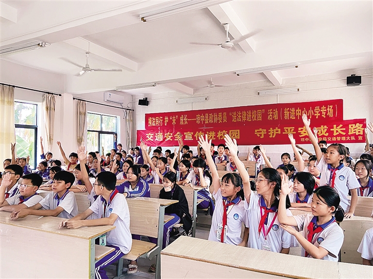 6月28日上午,琼中黎族苗族自治县公安局交通管理大队交警到新进中心小学开讲交通安全课。
