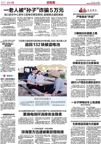 本报讯(记者杨晓晖)近日,王女士来到琼海市公安局会山派出所,将一面锦旗送到民警手中,感谢民警快速破案,为其挽回损失。