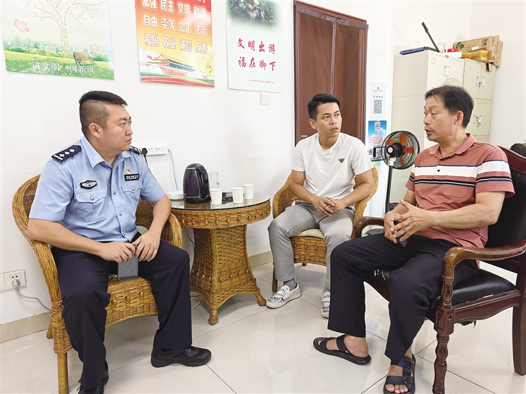 “许警官是老熟人啦,常常到我们店里问这问那,向我们普法。”广信源商行老板吴先生说。许斌在社区文化站每月定时开展防诈骗、禁毒等普法宣传活动,并结合不同年龄阶段的群体特点,运用普通话、海南话与群众交流,拉近与群众距离,用心用情守护群众的人身安全和财产安全。