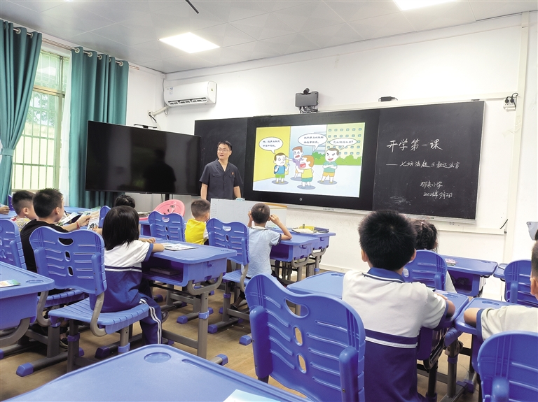“新学期,咱们要从遵纪守法开始,做一名优秀的学生。”9月2日,白沙法院七坊法庭庭长王颢达以法治副校长身份分别走进七坊中学和那来小学,为同学们送去“开学第一课”,引导青少年与法同行,在学法守法中健康成长。