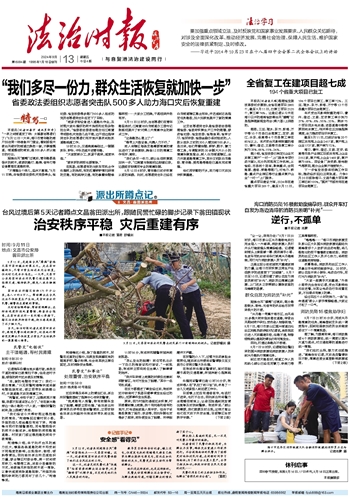 ~~~省委政法委组织志愿者突击队500多人助力海口灾后恢复重建