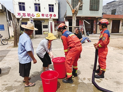 因受超强台风“摩羯”影响,文昌市潭牛、冯坡、龙楼、昌洒、翁田等地多处区域出现断水情况,给当地群众生活带来不便。9月10起,保亭黎族苗族自治县消防救援大队指挥中心接到增援命令后,第一时间调派1辆8吨水罐消防车及4名消防救援人员赶赴文昌市缺水地区供水。