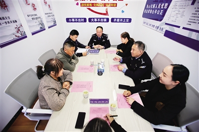 “在‘联调’中,我们将警务人员全部列入各社区(村)调解员队伍,会同法庭、司法所、妇联等部门工作人员,以及‘法律明白人’、网格员等,依据联商结果和‘三色预警’对不同风险等级家庭,选派不同的调解人员,有针对性地开展调解。”刘亚维表示,2022年以来,该所已参与3000余起婚恋家庭纠纷的调解。