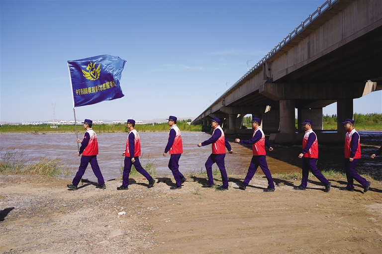 “没想到几天没来,这里就堆满了芦根和塑料瓶。”“大家捡垃圾时要相互照应,一定要注意安全。”10月1日下午2时许,中宁县黄河公路大桥下,几名“蓝衣人”正沿着河岸搜索。当日,中宁县消防救援大队每周一次的巡河环保活动如期展开。