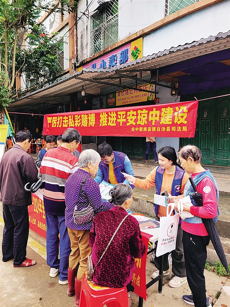 近日,琼中黎族苗族自治县司法局吊罗山司法所联合团乡委、太平社区开展打击私彩赌博集中宣传活动。