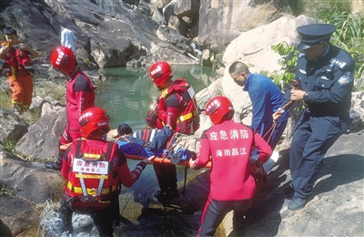 “15时30分许,我们在半山腰一山崖下发现袁某某。当时,他躺在乱石中,脸色发青,意识有些模糊,且无法说清楚自己哪里受伤。”许观保说,为了避免盲目救助伤及袁某某,民警在消防人员和医疗人员赶到后,配合将袁某某抬到担架上。