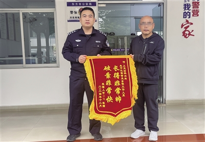 “破案非常快,长得非常帅!”这面内容颇有喜感的锦旗,是群众仲先生在收到民警帮忙追回的4.58万元被诈骗款后,送到省公安厅反走私和海岸管理总队第六支队的。字里行间,满是仲先生在钱款失而复得后的欣喜和对海岸警察反诈工作的肯定。