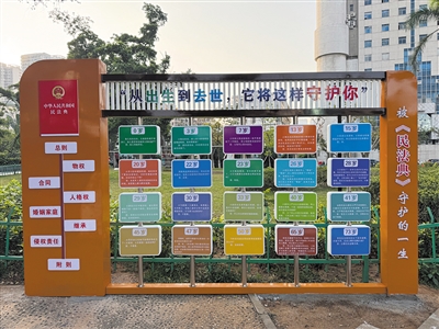 据了解,龙华区司法局在主题公园的运营中,始终坚持“突出特色、创新形式”的工作思路,着力构建多层次、全方位的法治宣传“生态圈”。一方面,通过持续更新宣传内容,确保法律知识与群众需求同步。公园的宣传载体不仅涵盖民法典的基本内容,还根据社会热点和民生关切,及时补充与居民生活息息相关的法律知识,如消费者权益保护、老年人权益保障等,赋予法治宣传以鲜明的时代特色和文化内涵。