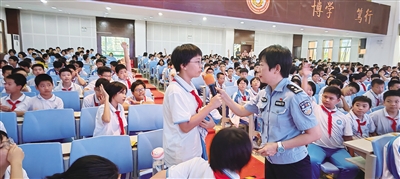 6月29日,海南省美兰强制隔离戒毒所四级高级警长王文芳走进海南省国兴中学,向孩子们讲授禁毒知识。校领导被深深吸引,不仅全程听完课程,还特意叫来德育处老师一同学习。