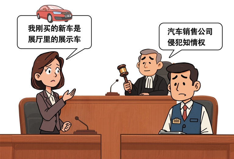 海口市民蔡女士喜提爱车,当她连接新车的行车记录仪时,却发现车辆经销商卖给她的竟是被人试乘试坐过的展销车,而她并不知情。跟销售商协商未果后,蔡女士将其起诉到了法院,要求赔偿5万元。法院审理后认为销售商侵犯知情权,判决经销商赔偿车主经济损失5000元。