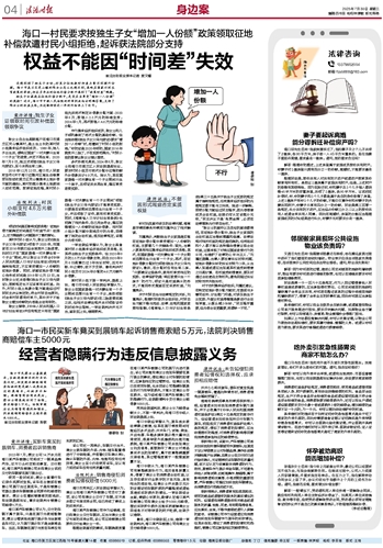 海口一村民要求按独生子女“增加一人份额”政策领取征地补偿款遭村民小组拒绝,起诉获法院部分支持~~~