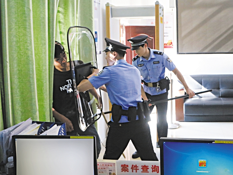 此次演练主要围绕12309来访安检场所、可能出现的突发事件进行模拟训练,全面检验司法警察队伍的应急反应和协同作战水平。