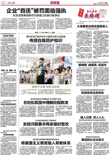 本报讯(法治时报全媒体记者许光伟 马宏新)近日,儋州市三都办事处联合儋州市公安局环新英湾公安局、三都海岸派出所在三都办事处暑期爱心托管站举办儿童防性侵公益课堂,将公共托管服务与专业安全教育深度融合,为孩子们的健康成长构筑起一道坚实屏障。