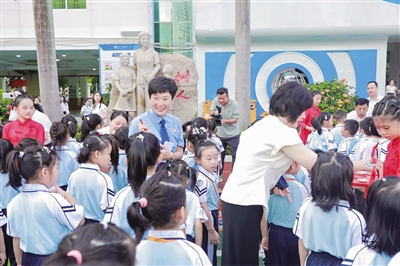 | 9月1日,海口市检察院检察官、海口市滨海第九小学法治副校长刘磊为学生们上“开学第一课”。(海口检察院供图) |