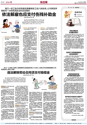 依法解雇也应支付伤残补助金