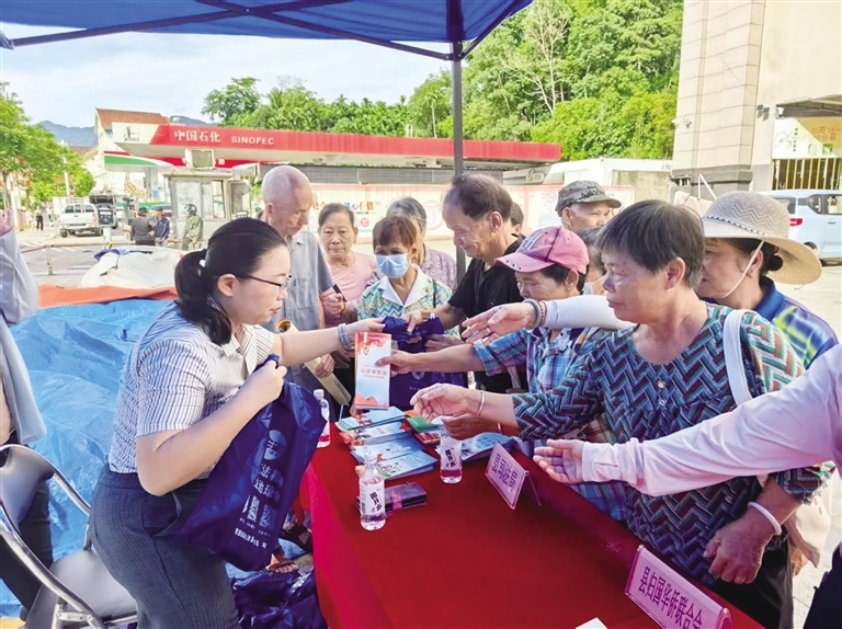 9月9日,借助全国科普月活动契机,琼中黎族苗族自治县司法局组织法律援助志愿服务队到万家惠超市门口,把法律知识“打包”送上门,100余名群众在互动中学会“护身法”。