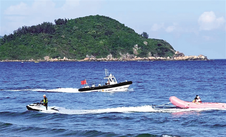 山钦湾海岸派出所所长吴崇宾说,警力有限,但科技力量无穷,派出所发挥部门陆地联动、空中无人机巡逻、海上执法艇巡逻救助等科技立体巡防优势,山钦湾涉旅安全事故多年零发生。