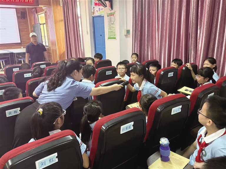 同时,李筱彤以案释法,用电影故事的情节告诉学生们在遭遇欺负时如何加强自我防范与应对,让他们懂得使用法律武器保护自己。李筱彤还针对日常生活中的潜在风险设计提问,通过互动游戏,强化他们对危险情境的判断能力,并传授应对技巧。