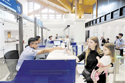 9月27日8时30分,来自哈萨克斯坦阿拉木图的航班飞抵三亚,凤凰出入境边防检查站执勤民警为该航班217名旅客高效办理入境手续。