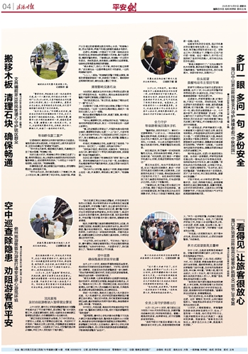 不知不觉间,40分钟的巡逻行程,一路平安。此时,阵阵微风拂过,老街商铺悬挂的五星红旗轻轻飘扬,温馨而惬意。这份平安祥和的背后,正是来自公安民警的默默守护,才将这独有的烟火气与节日氛围展现得淋漓尽致。
