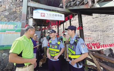 “请携带好随身物品,不要拥挤。”“请不要攀爬护栏,注意安全。”琼海市公安局治安管理大队民警、辅警和往日一样在景区维护秩序。