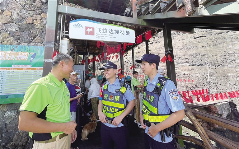 “我们坚持涉旅纠纷‘小事快处’、涉旅案件‘小案快办’,组织警力深入景区执勤,做到‘警力跟着服务走,服务跟着游客走’。”琼海市公安局治安管理大队副大队长李文成介绍。