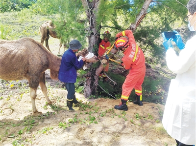 景区骆驼受伤 消防成功救助