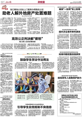 “不用出门,在家就能办完事,你们想得太周到了!”办理结束时,李某握着公证人员的手再三感谢。更让她高兴的是,公证人员现场告知,公证书将在1个工作日内制作完成。在公证人员上门服务的第二天,李某的女儿张某就到海口市南海公证处拿到了公证书。之后,她很快与买方对接完成了房产交易手续,困扰一家人的难题终于得到解决。