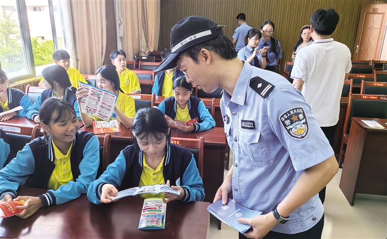 派驻民警通过现场展示仿真毒品模型、发放图文并茂的禁毒宣传手册、赠送印有禁毒标语的纪念品等方式寓教于乐,进一步加深学生对毒品危害的认知,有效巩固了宣传教育成果。