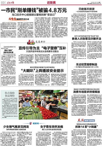 本报讯(法治时报全媒体记者麦文耀)随着网络社交的普及,刷单类诈骗逐渐渗透到各类平台的评论区、私信中,伪装成网络兼职或电商平台派送的福利,甚至利用美色做诱饵。10月20日,海口反诈中心发布真实案例,提醒市民警惕此类诈骗。